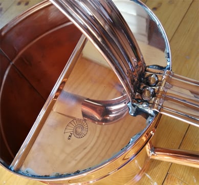 L’arrosoir est fabriqué en tôle de cuivre massif. La conclusion du bec est incliné, pour une chute d'eau spéciale.